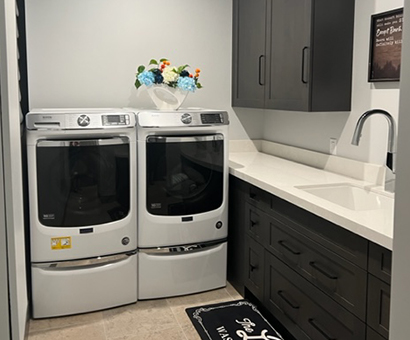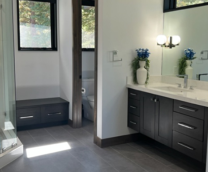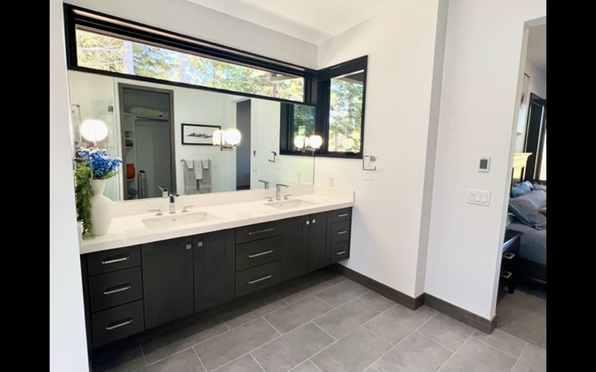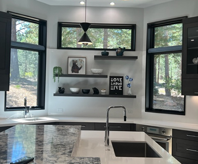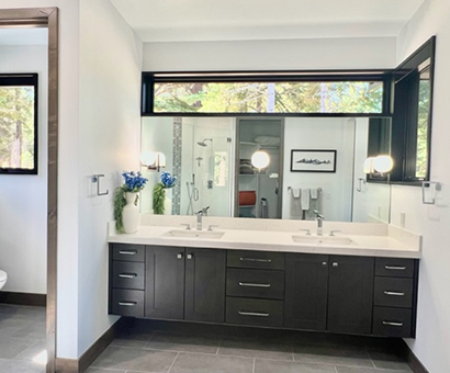 I helped the owner create a Mountain Modern Home in Truckee CA with cabinetry desgin. The client had inspirations of a contemporary look, but wanted it to fit in the Truckee Mountain theme. The client had selected all of her finishes and materials. The selected cabinet doors are a flat panel door, with frameless boxes in order to create a very clean and sleek fit. The rustic alder material, combined with the darker Grey/brown tones help to give the space the Mountain rustic feel.