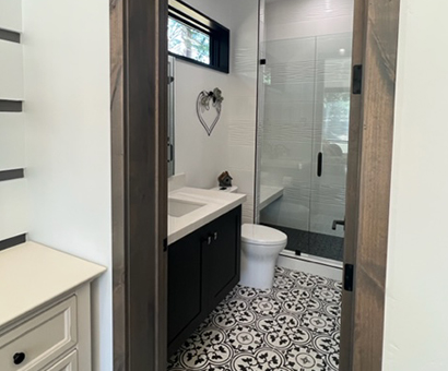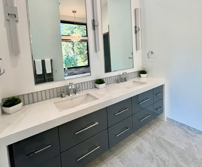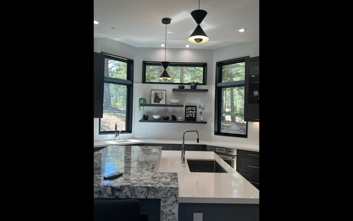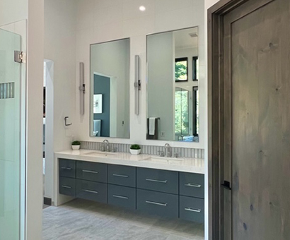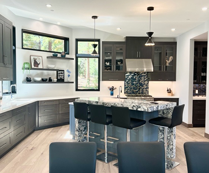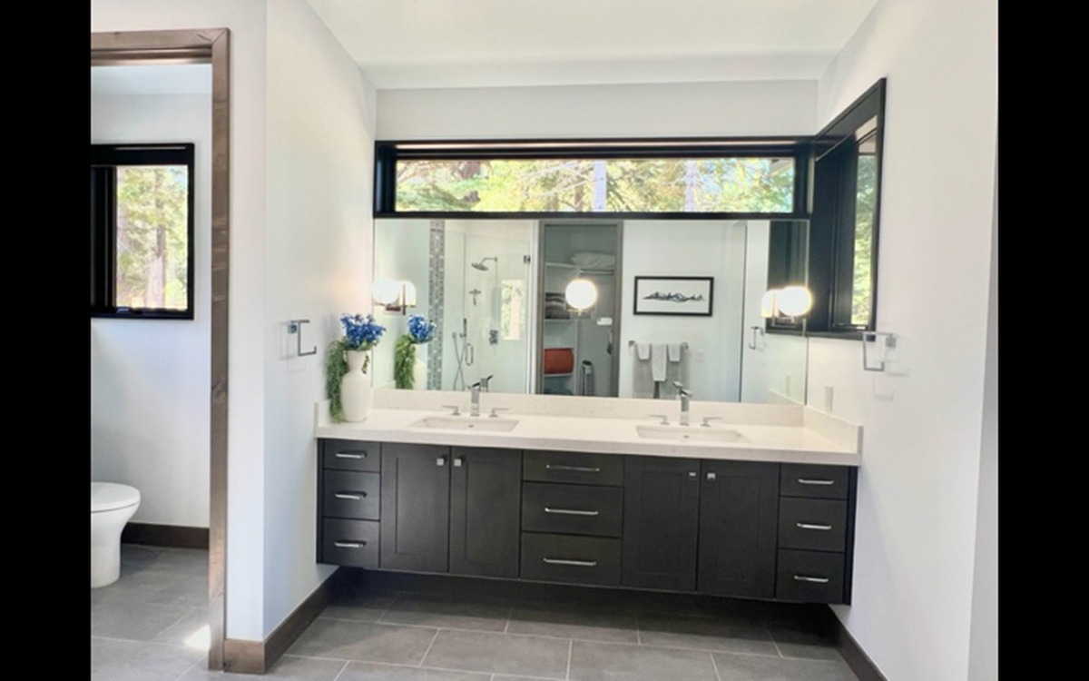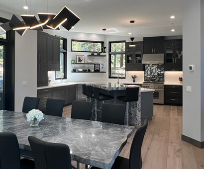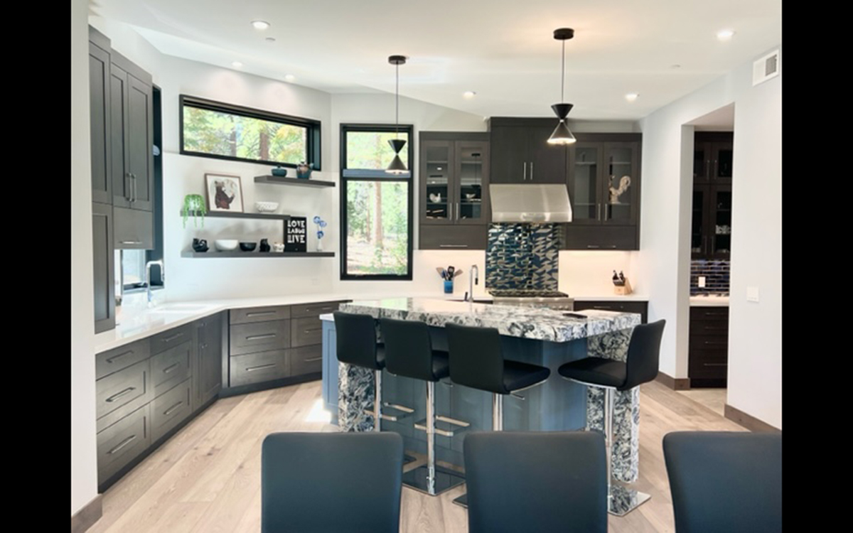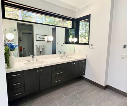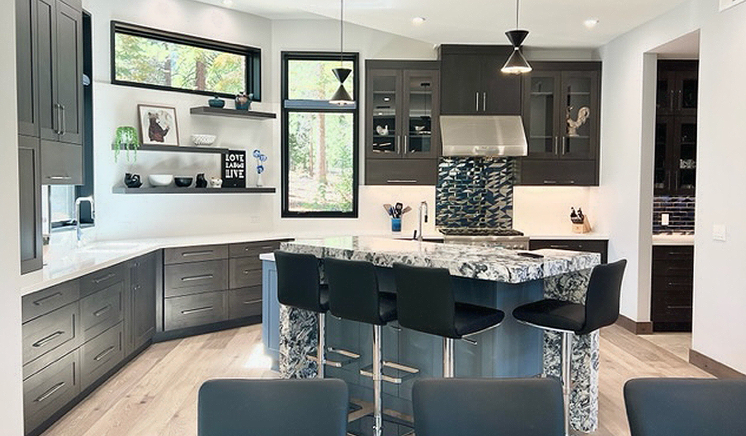 I helped the owner create a Mountain Modern Home in Truckee CA with cabinetry desgin. The client had inspirations of a contemporary look, but wanted it to fit in the Truckee Mountain theme. The client had selected all of her finishes and materials. The selected cabinet doors are a flat panel door, with frameless boxes in order to create a very clean and sleek fit. The rustic alder material, combined with the darker Grey/brown tones help to give the space the Mountain rustic feel.